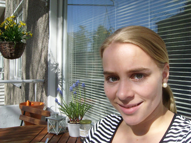 En stor kaffelatte och en cupcake intogs i solen på balkongen. Ljuvligt! Jag blev så inspirerad av cupcakes på bloggpartyt att jag måste baka egna igår. Mina blev inte alls lika goda, men nog helt okej....